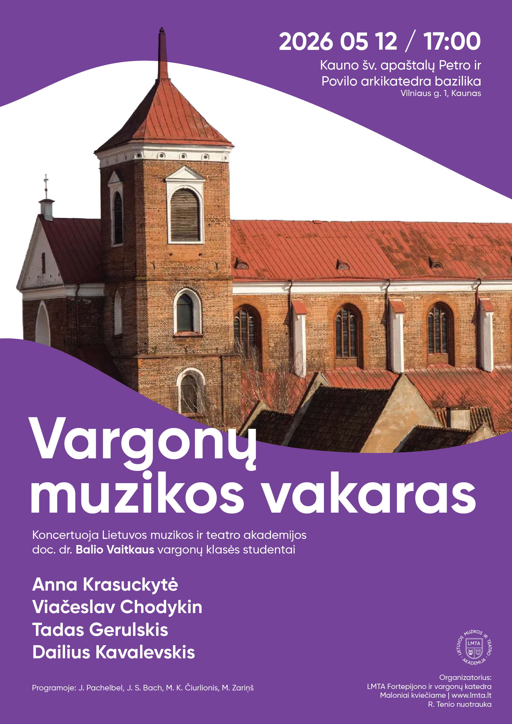 Koncertuoja LMTA doc. dr. Balio Vaitkaus vargonų klasės studentai