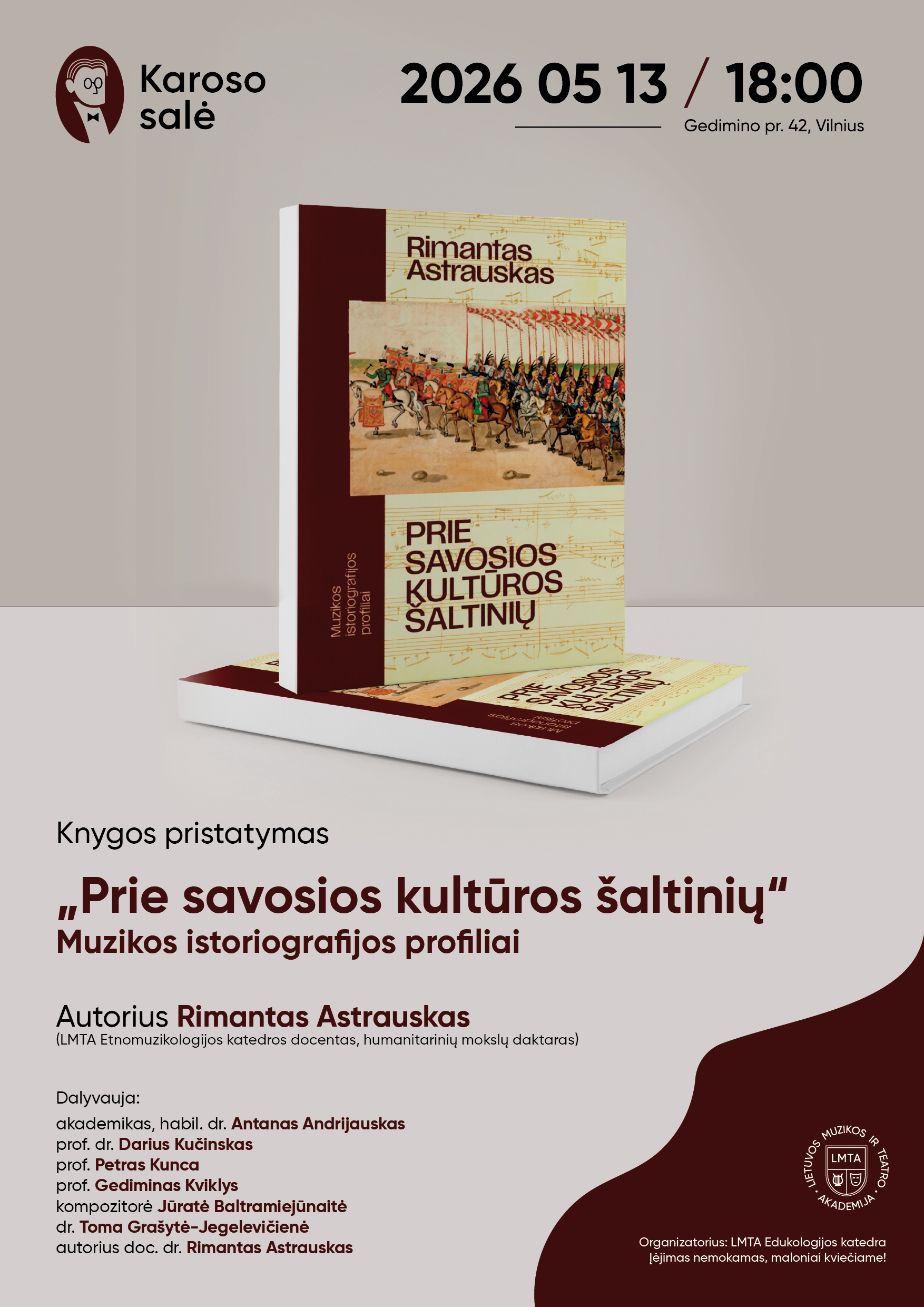 KNYGOS „PRIE SAVOSIOS KULTŪROS ŠALTINIŲ. MUZIKOS ISTORIOGRAFIJOS PROFILIAI“ PRISTATYMAS