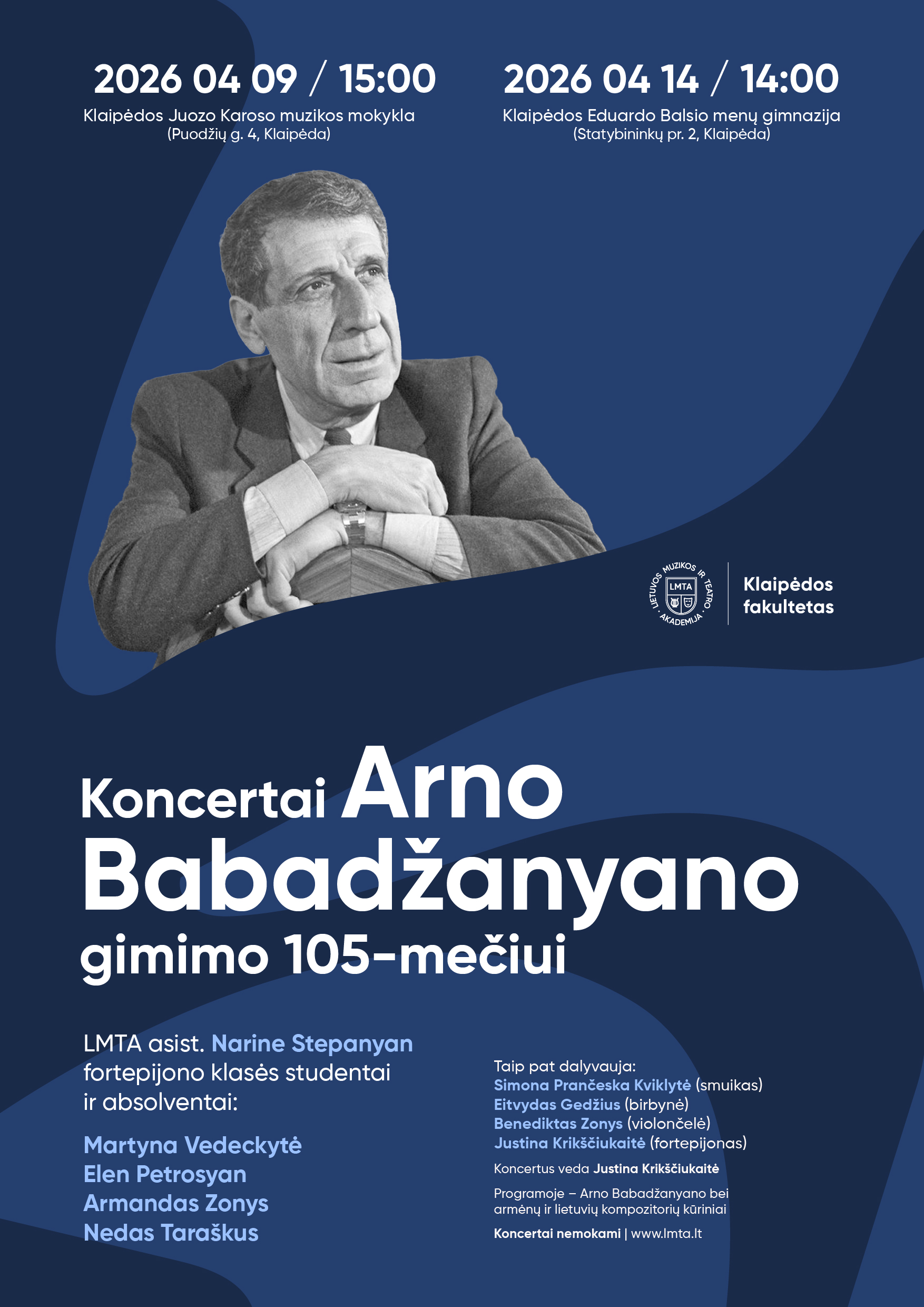 KONCERTAI ARNO BABADŽANYANO GIMIMO 105-MEČIUI | J. Karoso muzikos mokykla