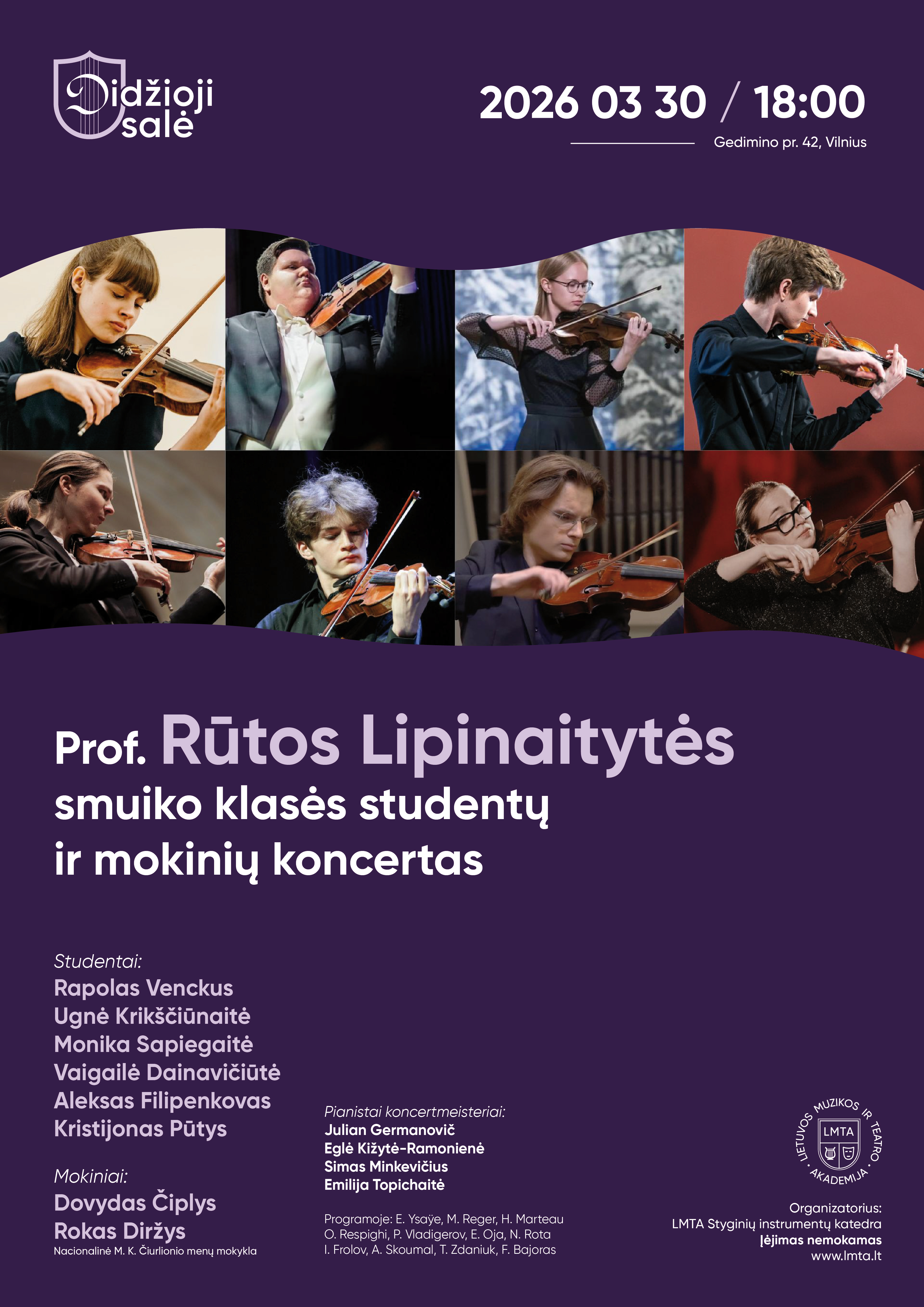 LMTA PROF. RŪTOS LIPINAITYTĖS SMUIKO KLASĖS STUDENTŲ IR MOKINIŲ KONCERTAS