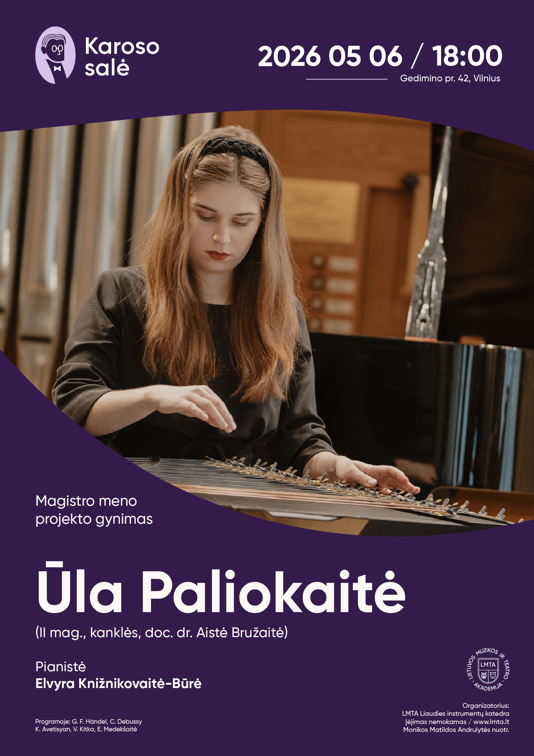 Programoje: G. F. Händel, C. Debussy, K. Avetisyan, V. Kitka, E. Medekšaitė