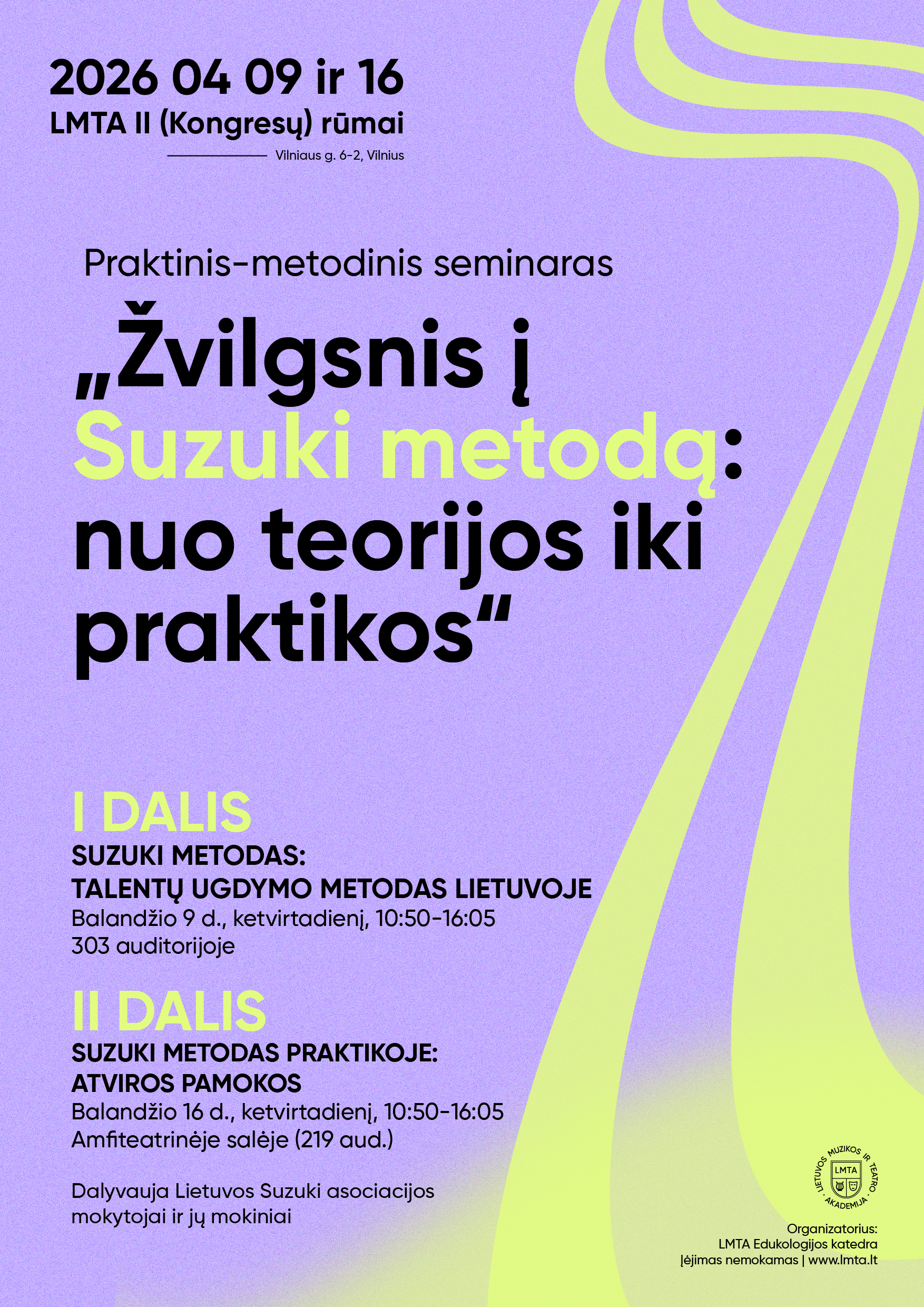 I DALIS | PRAKTINIS-METODINIS SEMINARAS „ŽVILGSNIS Į SUZUKI METODĄ: NUO TEORIJOS IKI PRAKTIKOS“