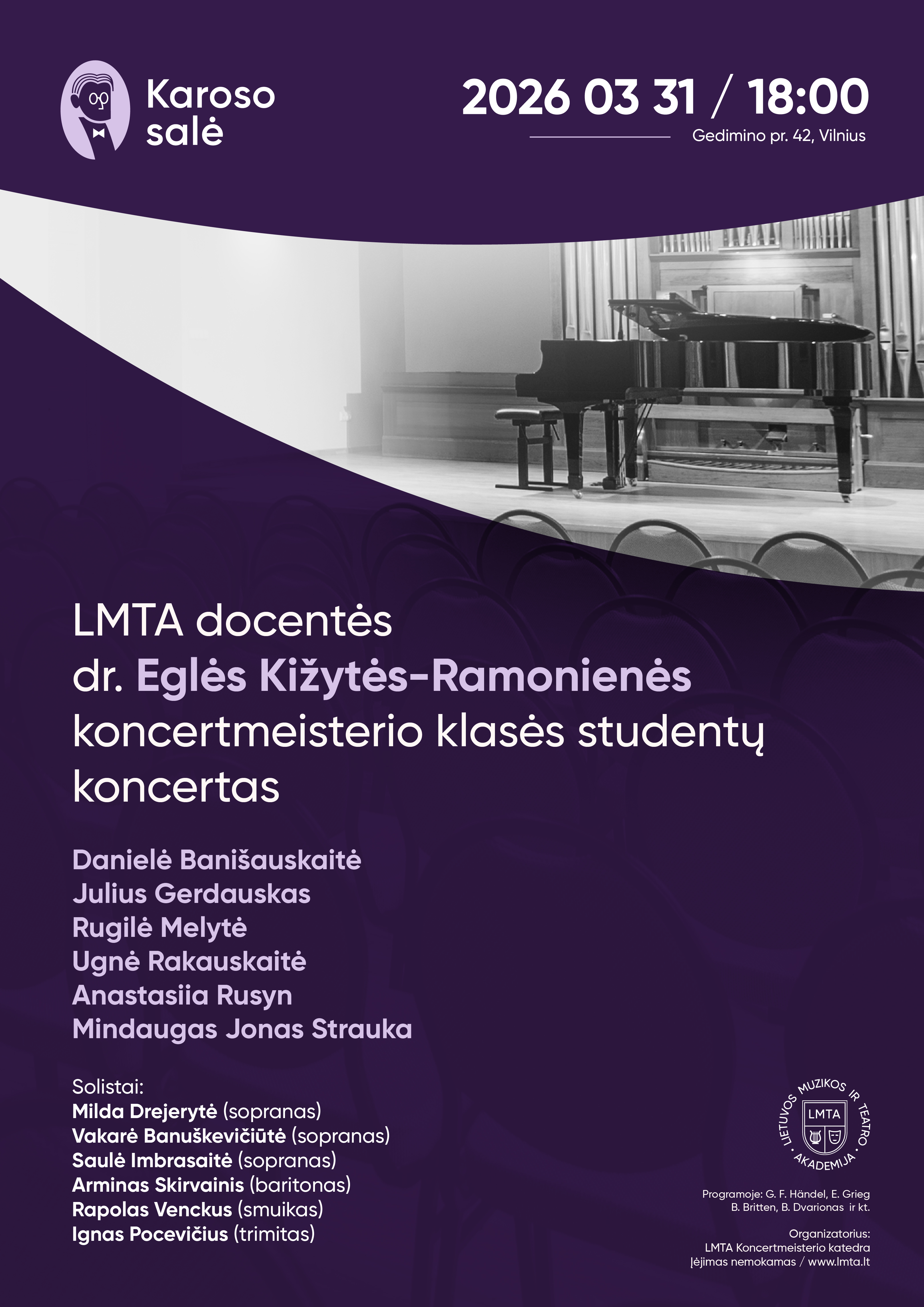 Koncertuoja LMTA doc. dr. Eglės Kižytės-Ramonienės koncertmeisterio klasės studentai ir solistai