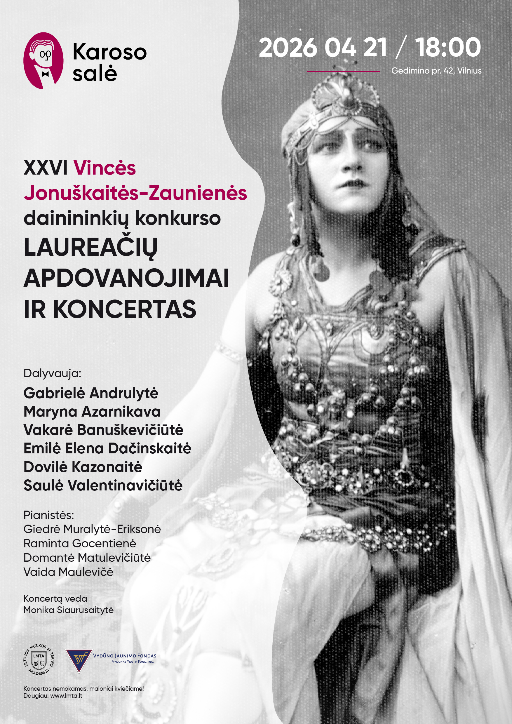 XXVI VINCĖS JONUŠKAITĖS-ZAUNIENĖS DAINININKIŲ KONKURSO APDOVANOJIMAI IR LAUREAČIŲ KONCERTAS