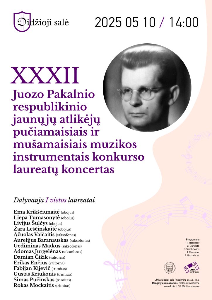 XXXII JUOZO PAKALNIO RESPUBLIKINIO JAUNŲJŲ ATLIKĖJŲ PUČIAMAISIAIS IR MUŠAMAISIAIS MUZIKOS INSTRUMENTAIS KONKURSO LAUREATŲ KONCERTAS