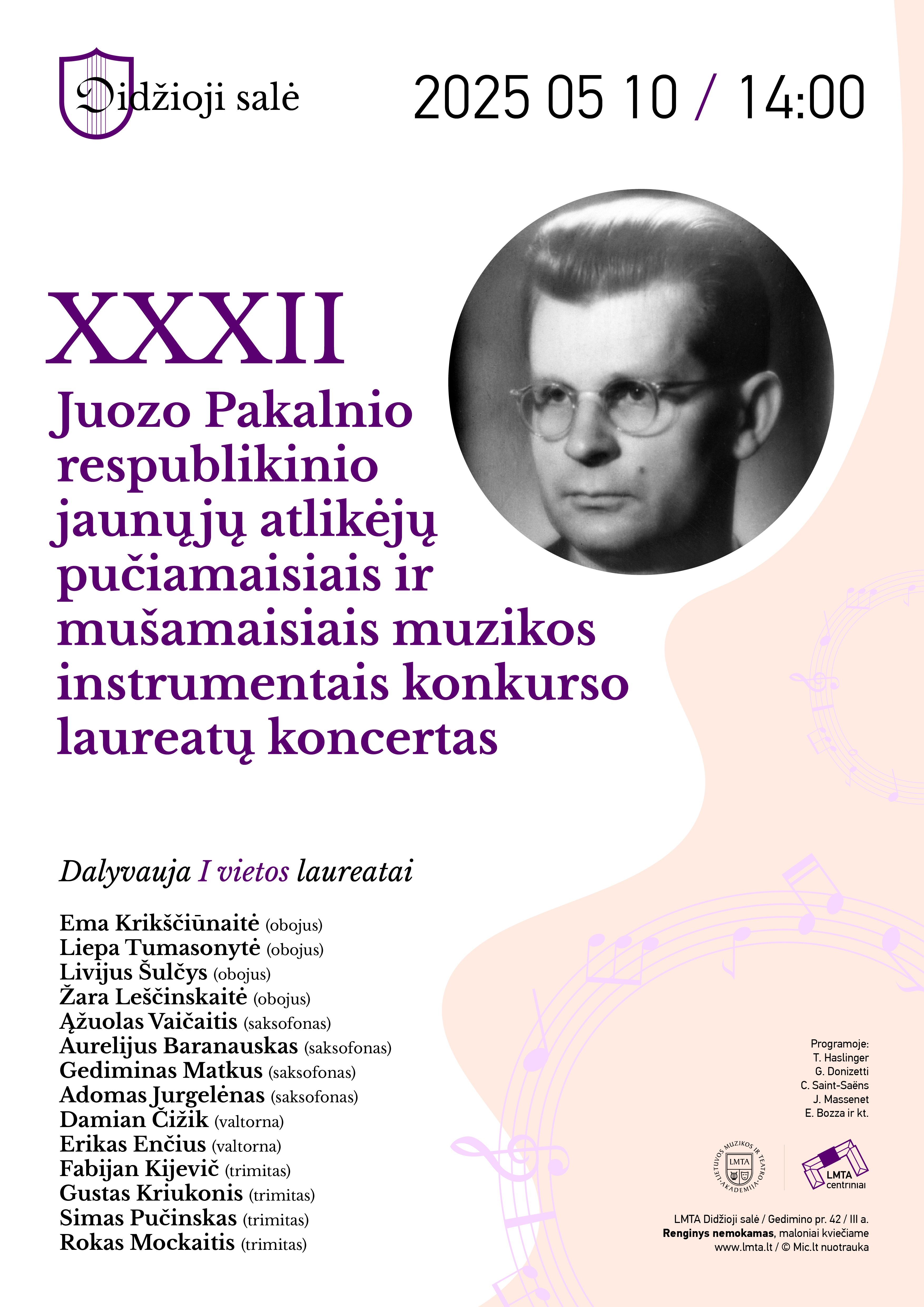 Programoje: T. Haslinger, G. Donizetti, C. Saint-Saëns, J. Massenet, E. Bozza ir kt.